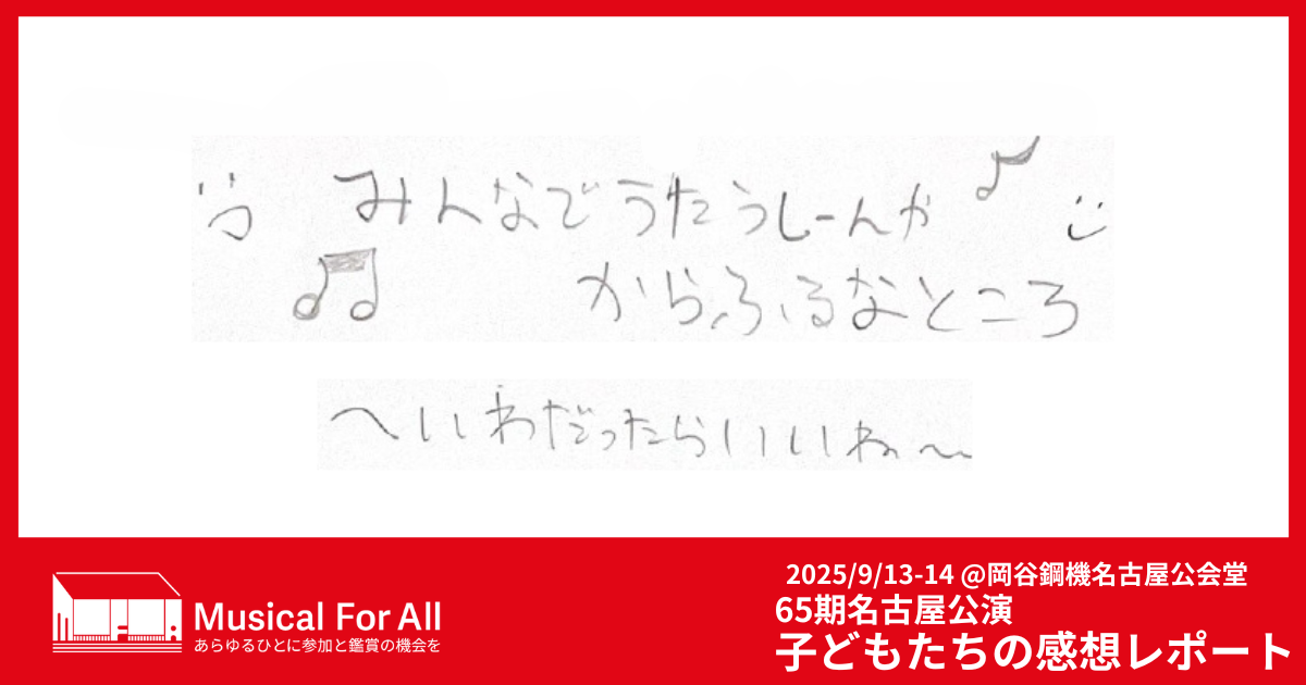 私たちは、参加する人、鑑賞する人、あらゆるひとのミュージカルへのアクセシビリティを高め「個性が響きあう社会」の実現をさらに推し進めていきます。